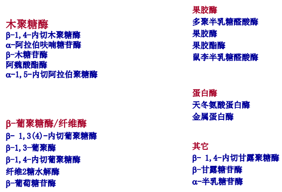 ? 通用性、兼容性:一個產(chǎn)品能夠?yàn)樗腥占Z和動物種類提供廣譜的酶活性(非淀粉多糖的結(jié)構(gòu)非常復(fù)雜,需要廣譜復(fù)合酶去降解它),并且多種酶之間屬天然、同源,可減少酶之間的內(nèi)耗;