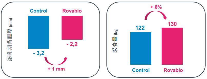 1、羅酶寶改善泌乳母豬的背膘厚和采食量