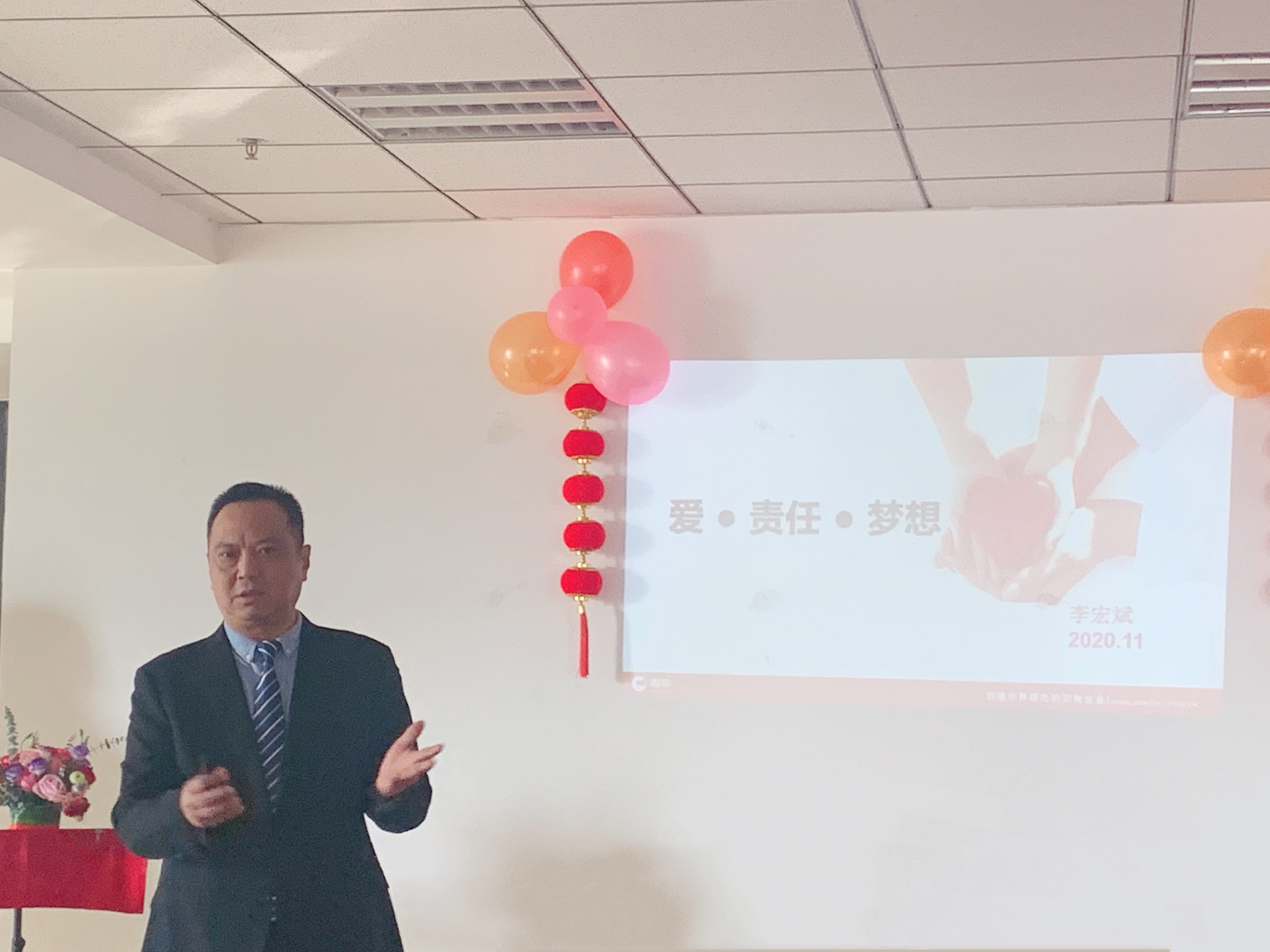 短暫的暖場(chǎng)后,會(huì)議邀請(qǐng)了一家人公司董事長(zhǎng)李宏斌先生上臺(tái)致詞,李董圍繞“愛·責(zé)任·夢(mèng)想”的主題總結(jié)了一家人和泊之富公司2020取得的進(jìn)步、2021年的發(fā)展思路,同時(shí)也對(duì)兩個(gè)公司的領(lǐng)導(dǎo)干部和員工提出了要求:思想統(tǒng)一、信念堅(jiān)定、行動(dòng)一致(有志、有識(shí)、有恒)、學(xué)習(xí)改變、擁抱時(shí)代、擁抱變化、甘愿做綠葉(功成不必在我,功成一定有我)及以解決問題為目的,誰對(duì)誰錯(cuò)不重要(只要公司好)的胸襟,想干事、能干事、干成事!
