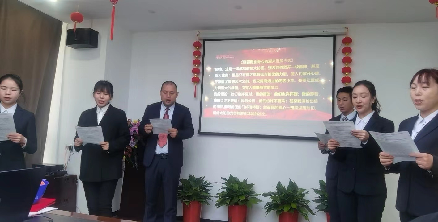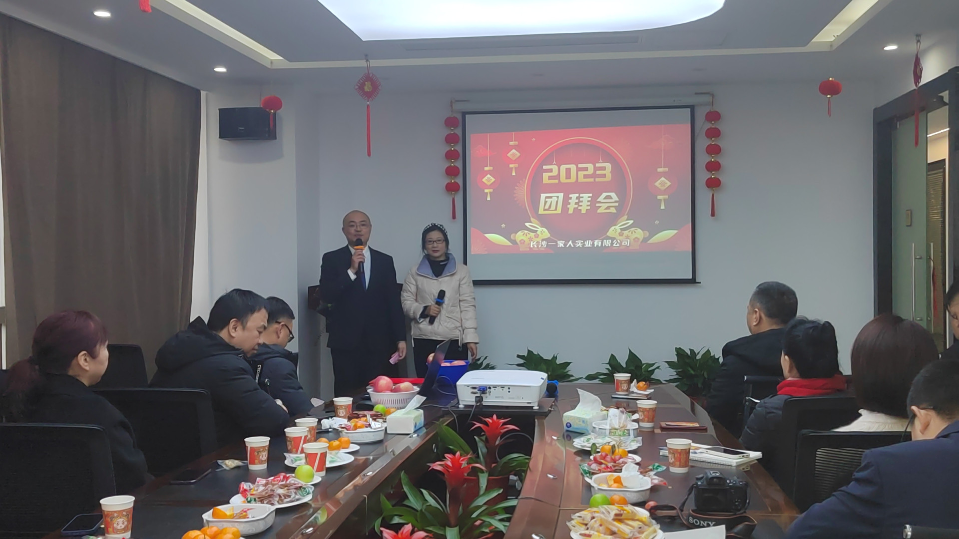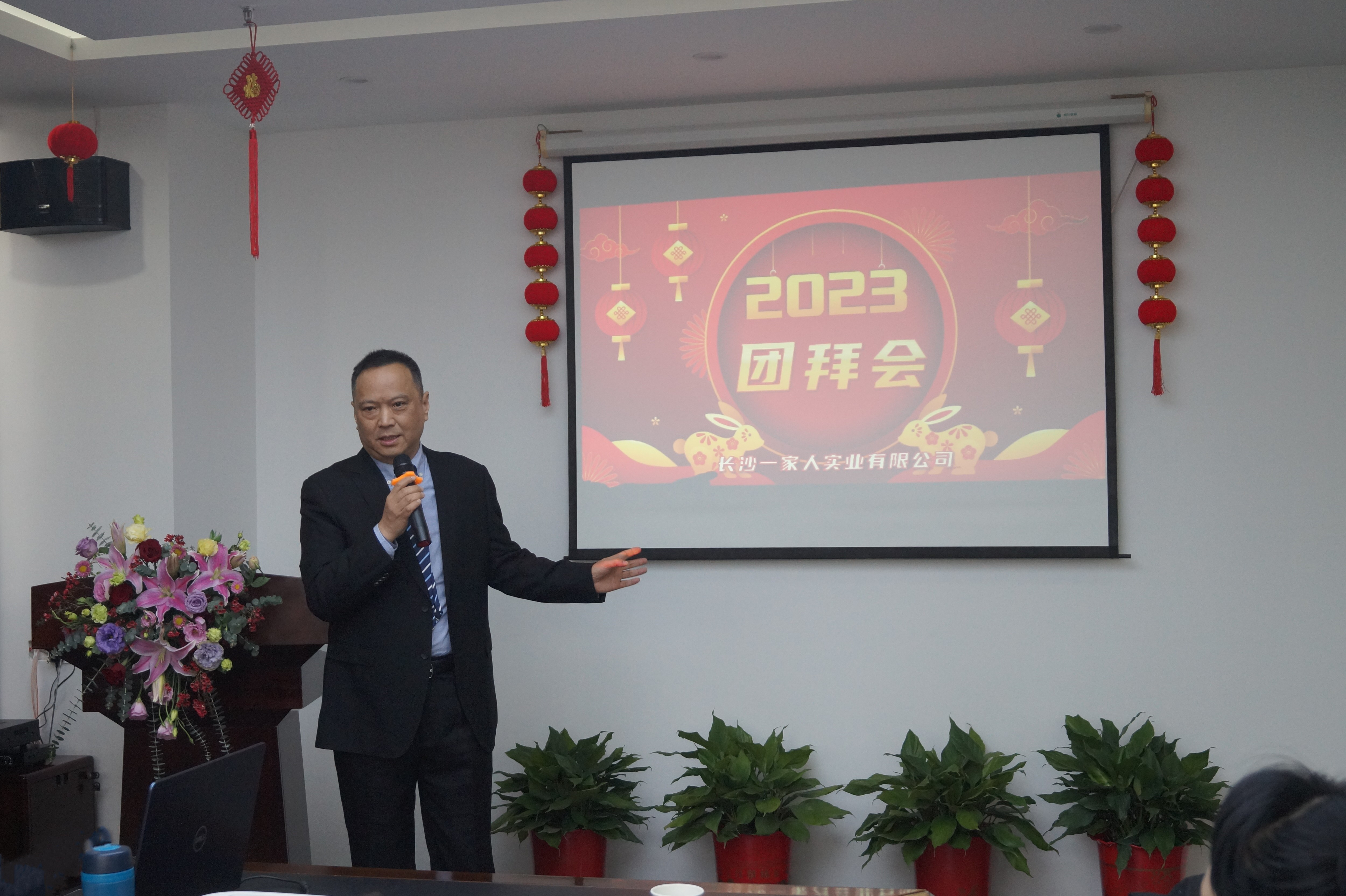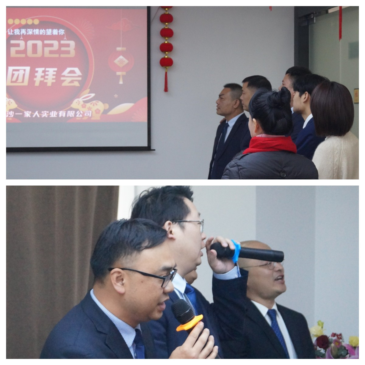 瑞雪兆豐年,2023年1月15日,2023年的第一場雪如約而至。在這洋溢著美好期望的小年里,長沙一家人實業(yè)有限公司、湖南匯德源商貿有限公司(以下簡稱“添加劑事業(yè)部”)和湖南泊之富生物技術有限公司、湖南惠益康生物科技有限公司、長沙宏德晟生物科技有限公司(以下簡稱“動保事業(yè)部”)的2022年表彰大會暨2023年主題為“華廳集瑞,旭日臨門,家人基業(yè),再展宏圖”迎新團拜會在裝修一新的華晨雙帆大廈15樓辦公室會議廳隆重舉行,兩個事業(yè)部的全體人員盛裝出席。