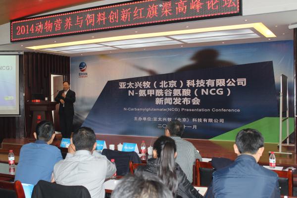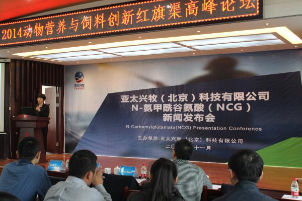 2014年11月19日, “動物營養(yǎng)與飼料創(chuàng)新紅旗渠高峰論壇暨亞太興牧N-氨甲酰谷氨酸(NCG)新聞發(fā)布會”在河南林州舉辦,本次會議由亞太興牧(北京)科技有限公司主辦。我司業(yè)務經(jīng)理龔倉云、王輝攜部分飼料企業(yè)技術(shù)總監(jiān)參加。