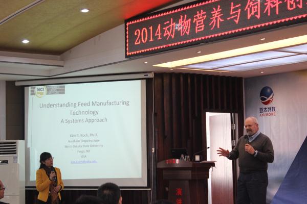 會上,中國科學院亞熱帶農(nóng)業(yè)生態(tài)研究所印遇龍院士、中國農(nóng)業(yè)大學譙仕彥教授、美國北卡州立大學 Sung Woo Kim 教授、北達科他州立大學 Kim Koch 教授等國內(nèi)外知名營養(yǎng)專家均進行講座。就何為功能性氨基酸及其如何改善豬的生長性能,NCG的研發(fā)歷程、作用機理及申報歷程,飼料加工工藝、飼料生產(chǎn)的經(jīng)營與監(jiān)督,國家飼料工程技術(shù)研究中心最新研究進展等方面進行了深入探討與分析。會議同時還邀請河南科學院副院長呂純操先生、中農(nóng)穎泰集團董事長郭文江先生參加。