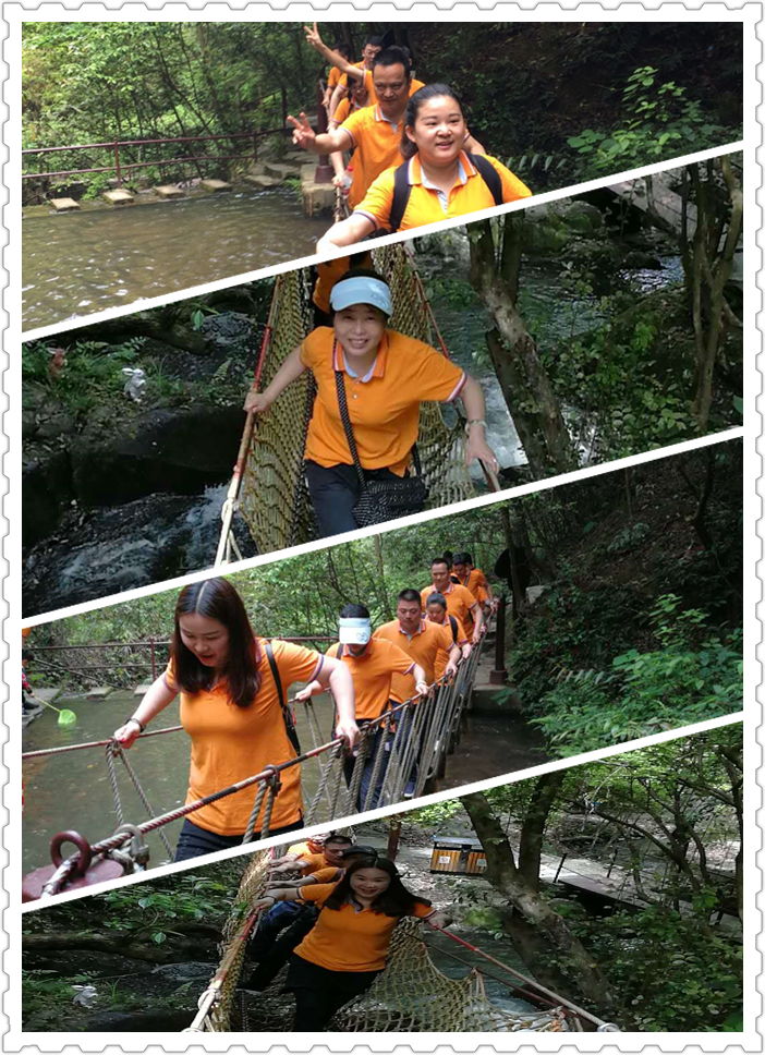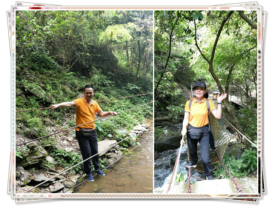中餐并稍作休息后,我們繼續(xù)乘車赴【皇龍大峽谷景區(qū)】,踩“浮動梅花樁”,過“雙龍?zhí)丁保露伞拌F索橋”、爬“壁虎網(wǎng)”、“滾木橋”、“云梯”等近20個拓展項目。景區(qū)古藤老樹、奇山怪石、鳥語花香隨處可見,清澈無污的泉水隨口品嘗,瀑布飛濺,置身其中猶如進入綠色樂園,感受“歡樂向前沖”的歡笑和刺激。