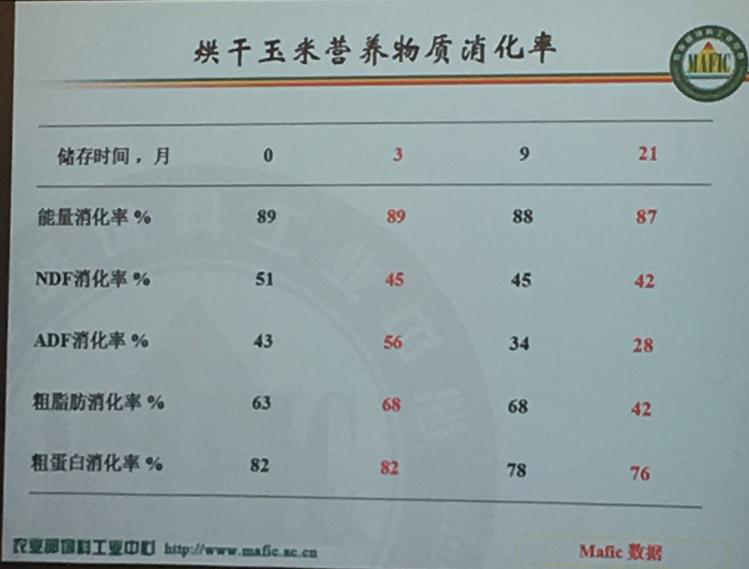 會議開始,圍繞陳化糧的主題,劉嶺博士指出,由于玉米種質(zhì)育種的的進(jìn)步,玉米的蛋白含量是呈下降趨勢的,間接的淀粉含量是上升的,其營養(yǎng)價值是提高的,一成不變的蛋白驗收標(biāo)準(zhǔn)是不科學(xué)的。容重是評價玉米質(zhì)量的重要指標(biāo),但有時需要與其他指標(biāo)同時使用才能更好的評價玉米,如工藝、不完善粒、口感等。烘干工藝與自然晾干的玉米,其表皮摩擦系數(shù)是不同的,前者,特別是直火烘干時會導(dǎo)致玉米容重下降。強(qiáng)調(diào)不完善粒是玉米驗收的非常關(guān)鍵的指標(biāo),這與毒素和儲存期直接相關(guān)。玉米營養(yǎng)物質(zhì)消化率方面指出,不同體重階段豬對是不一樣,但當(dāng)前數(shù)據(jù)庫往往沒體現(xiàn)出這種變化。