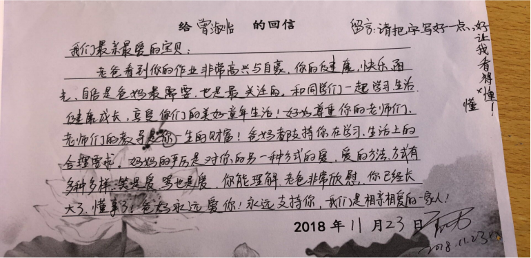 雖然是三個多小時,汗流浹背,坐得很不舒服(本人較胖,凳子太?。┑歉杏X時間很快,樂在其中,讓我們家長清醒,讓我們家長反思,讓我們家長進步,收獲滿滿,感動多多,小孩的成長,成才,成為社會有用之人,不僅僅是老師們,學(xué)校的努力與責(zé)任,更是我們家長的責(zé)任與擔(dān)當(dāng)!共筑愛心,共同進步,寥寥數(shù)語,寄托感慨,更表感激!